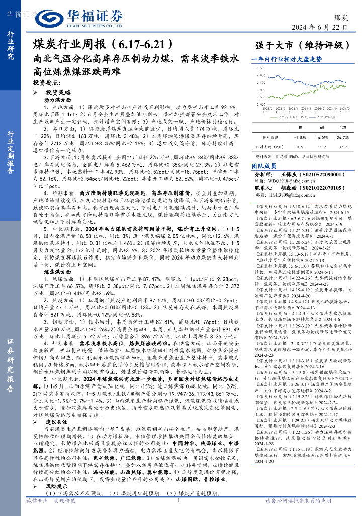 华福证券:煤炭行业周报:南北气温分化高库存压制动力煤,需求淡季铁水高位炼焦煤涨跌两难.pdf
