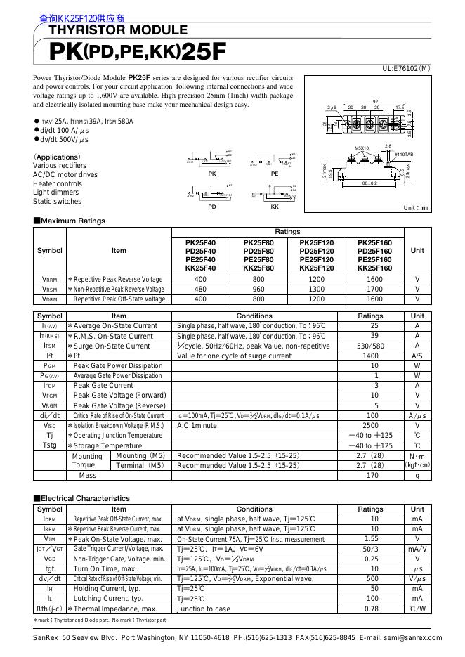 THYRISTOR MODULE PK(PD,PE,KK)25F 数据手册.pdf