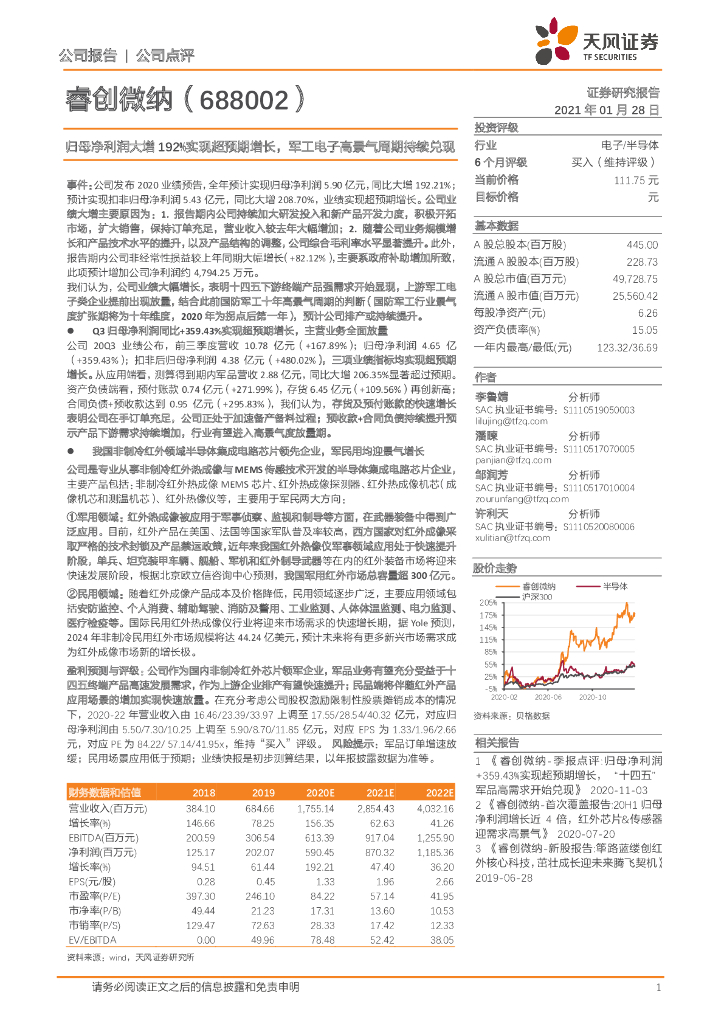 天风证券:睿创微纳(688002)-归母净利润大增192%实现超预期增长,军工电子高景气周期持续兑现.pdf
