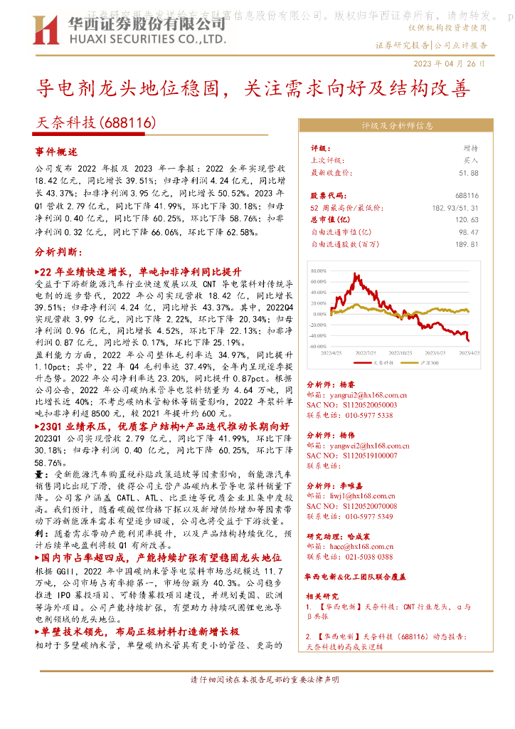 华西证券:天奈科技(688116)-导电剂龙头地位稳固,关注需求向好及结构改善.pdf