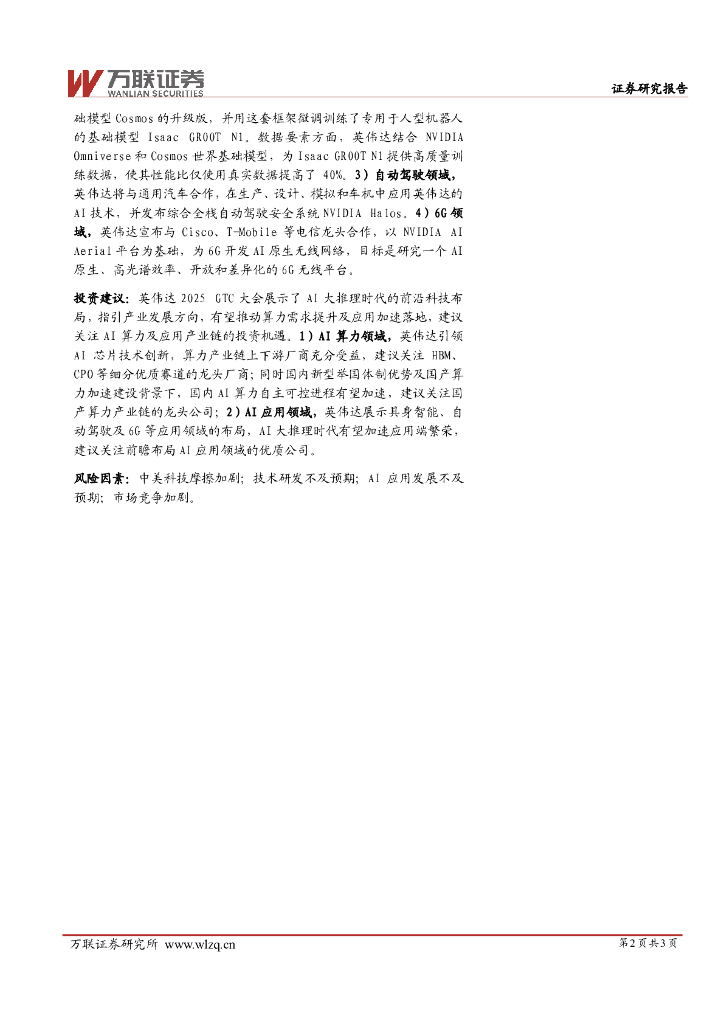 万联证券:电子行业快评报告:英伟达GTC2025大会召开,关注泛AI前沿科技.pdf
