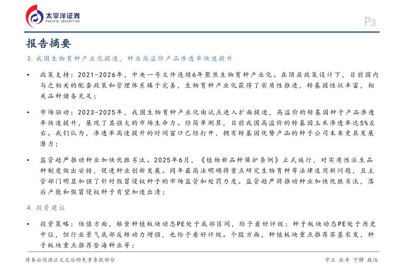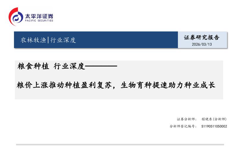 太平洋证券:粮食种植行业深度:粮价上涨推动种植盈利复苏,生物育种提速助力种业成长.pdf