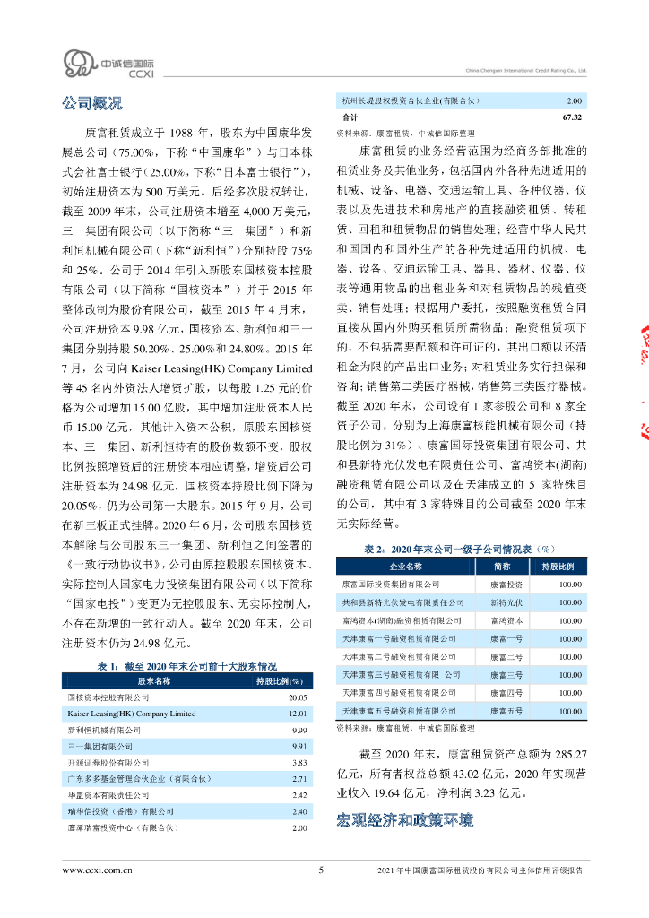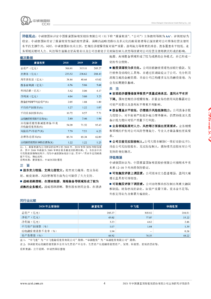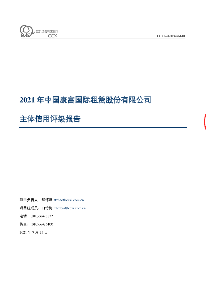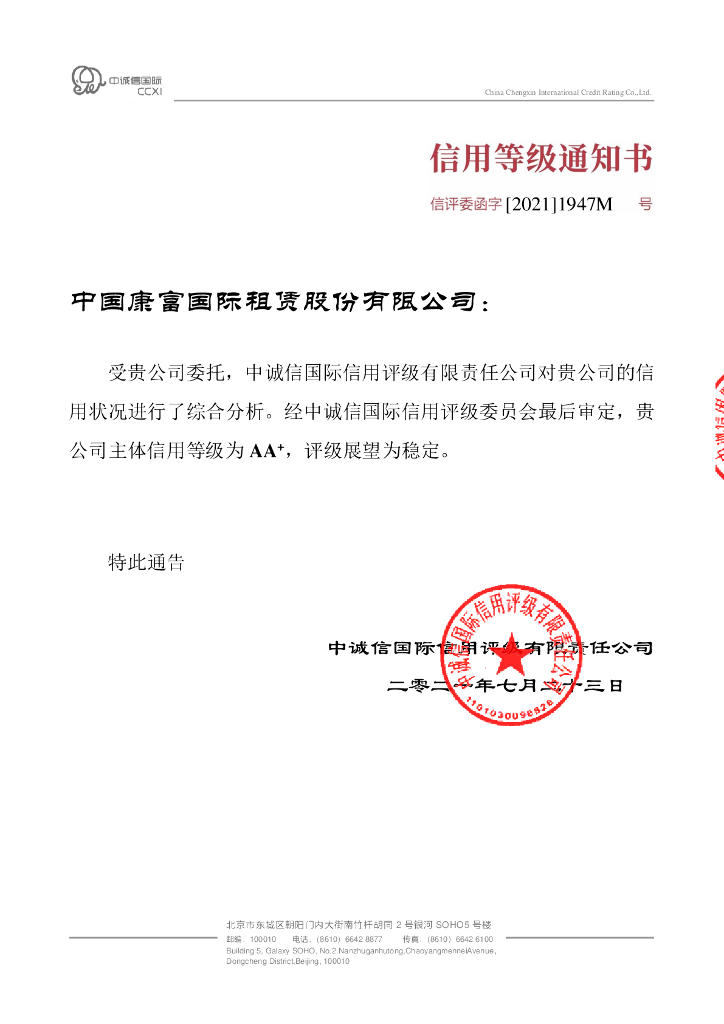 中诚信:中国康富国际租赁股份有限公司2021年度主体信用评级报告.pdf