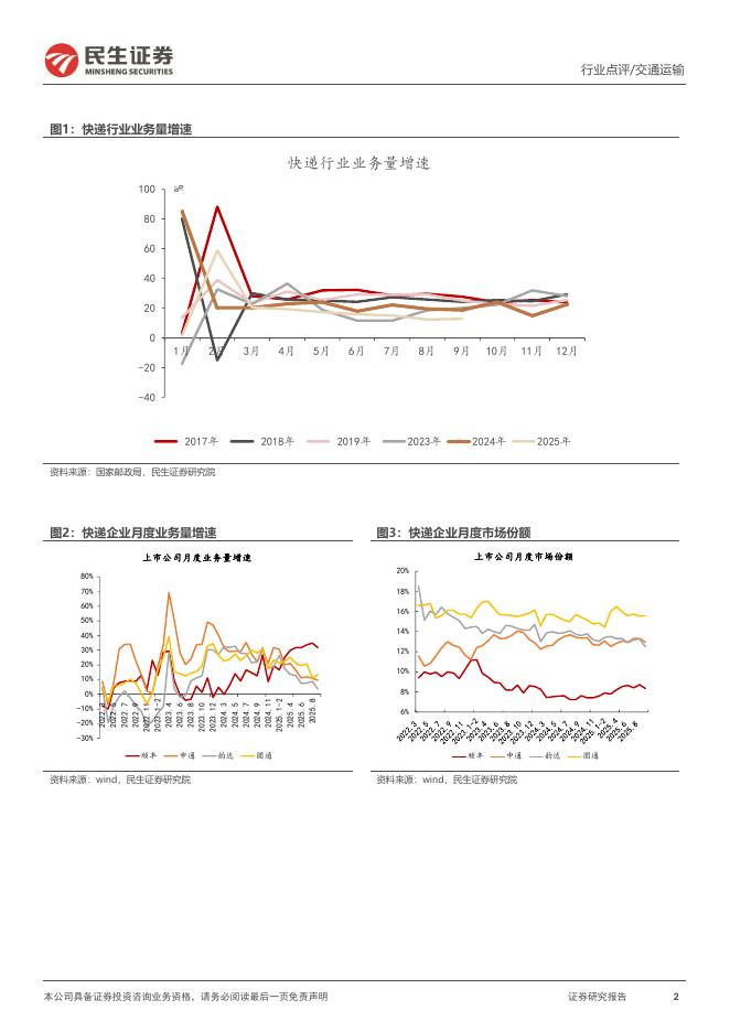 民生证券:交通运输行业2025年9月快递数据点评:“反内卷”持续推进,9月顺丰和韵达单票收入环比分别涨6毛和1毛.pdf