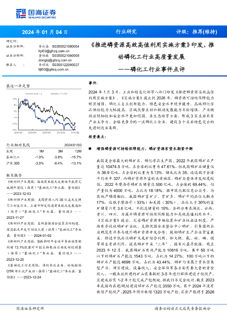国海证券:磷化工行业事件点评:《推进磷资源高效高值利用实施方案》印发,推动磷化工行业高质量发展.pdf
