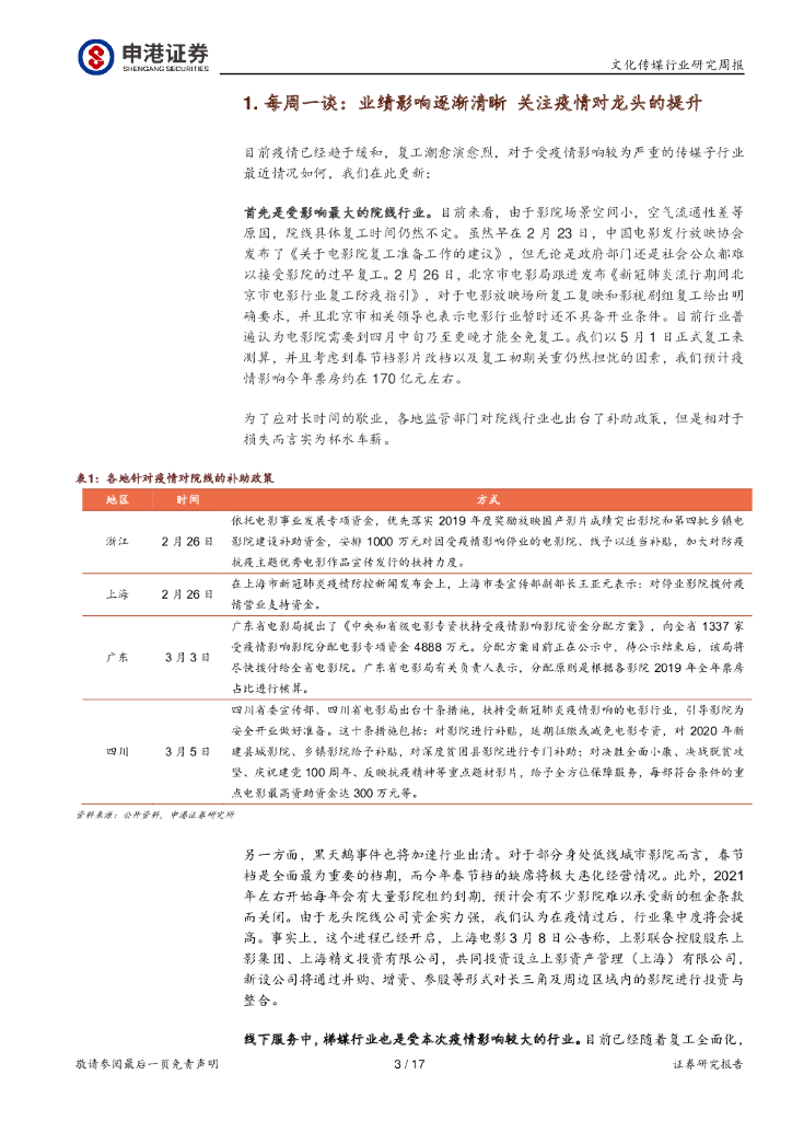 申港证券:文化传媒行业研究周报:业绩影响逐渐清晰关注疫情对龙头的提升.pdf
