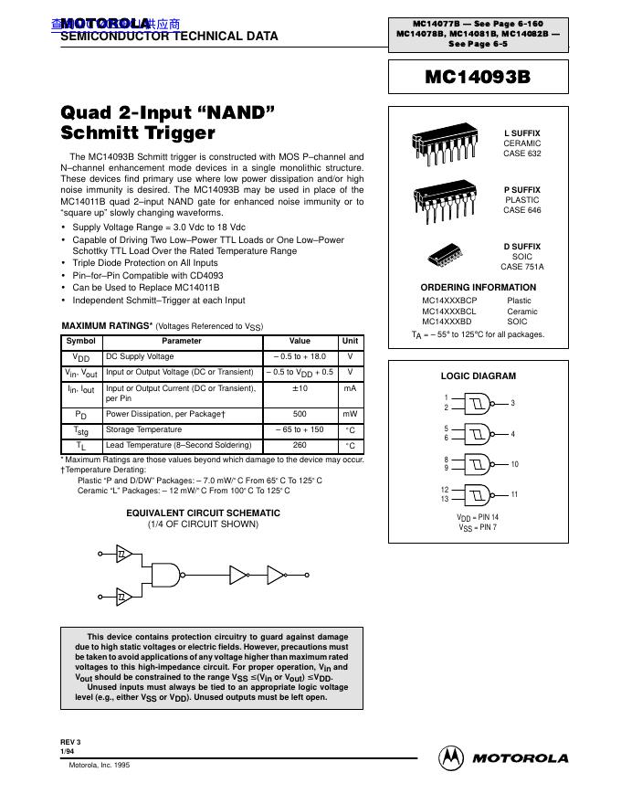 MOTOROLA Semiconductor MC14093B 数据手册.pdf