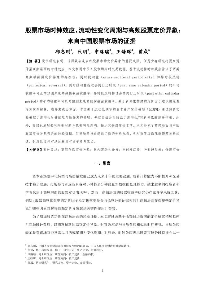 国际货币网:【IMI Working Paper No.2515】股票市场时钟效应、流动性变化周期与高频股票定价异象:来自中国股票市场的证据.pdf