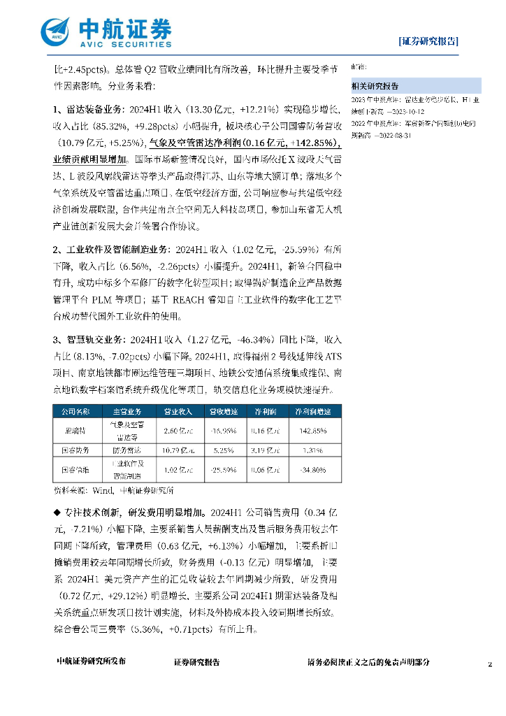 中航证券:国睿科技(600562)-2024半年报点评:雷达业务稳步增长,H1业绩及利润率创下新高.pdf