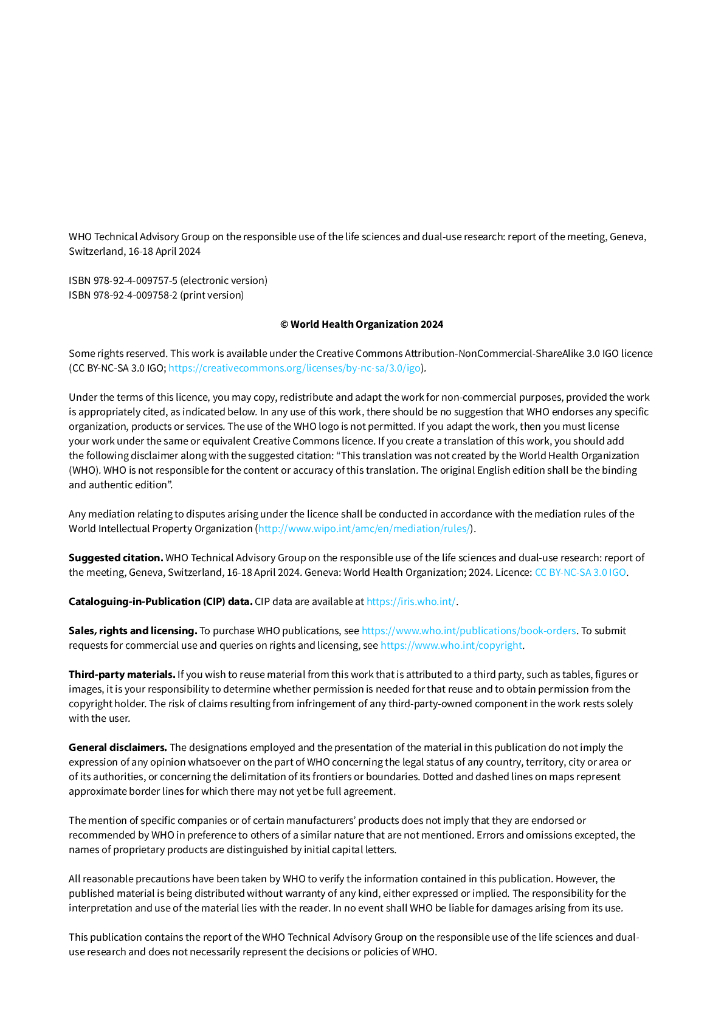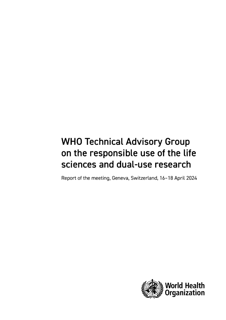 WHO世界卫生组织:2024年4月16日至18日世卫组织负责任地使用生命科学和双重用途研究技术咨询小组:会议报告,瑞士日内瓦(英文版).pdf