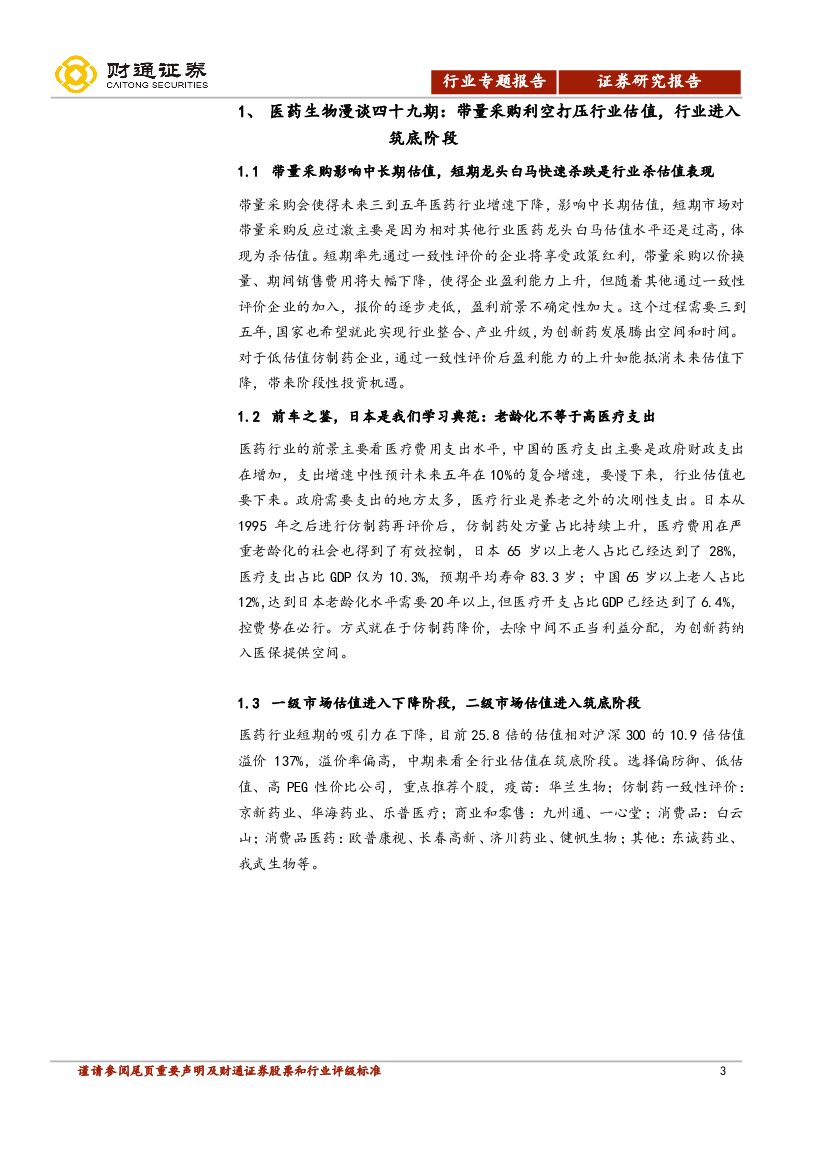 财通证券:医药生物行业周报:带量采购利空打压行业估值,行业进入筑底阶段.pdf