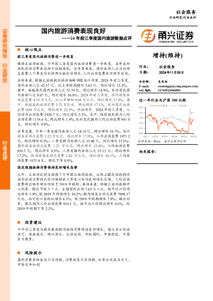 甬兴证券:24年前三季度国内旅游数据点评:国内旅游消费表现良好.pdf