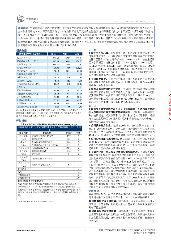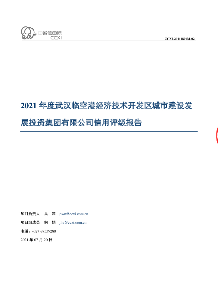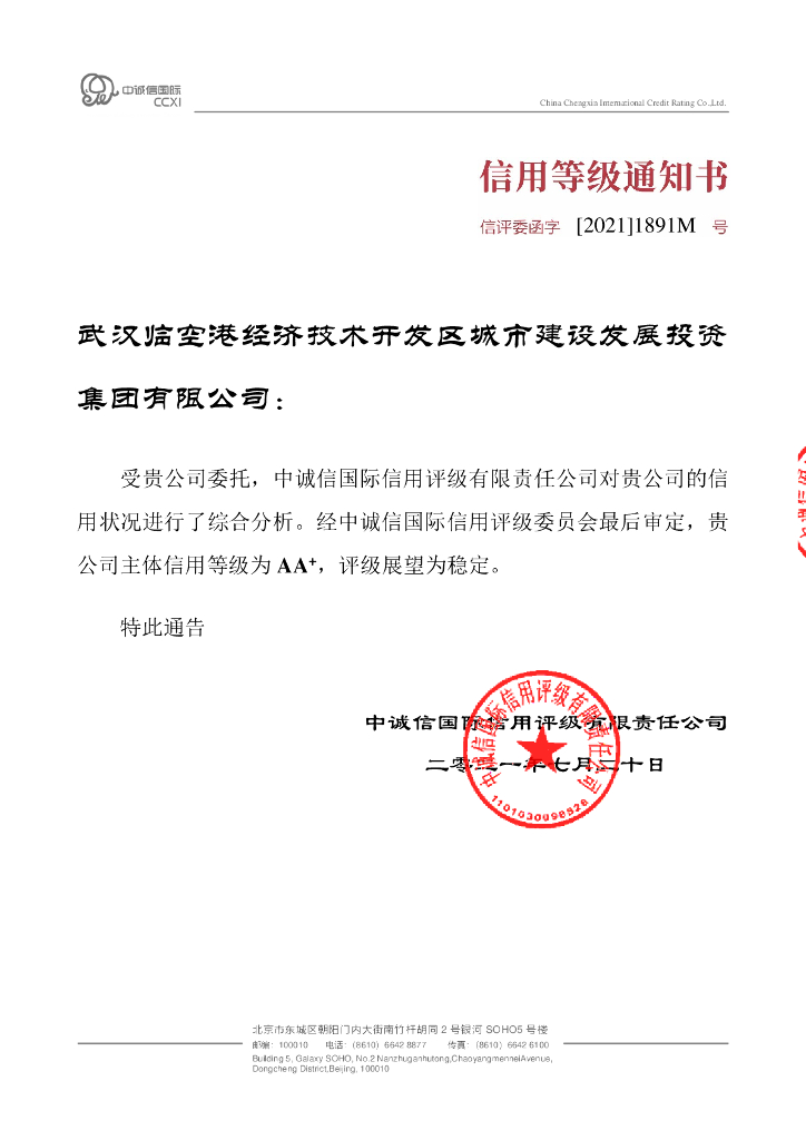 中诚信:2021年度武汉临空港经济技术开发区城市建设发展投资集团有限公司信用评级报告.pdf