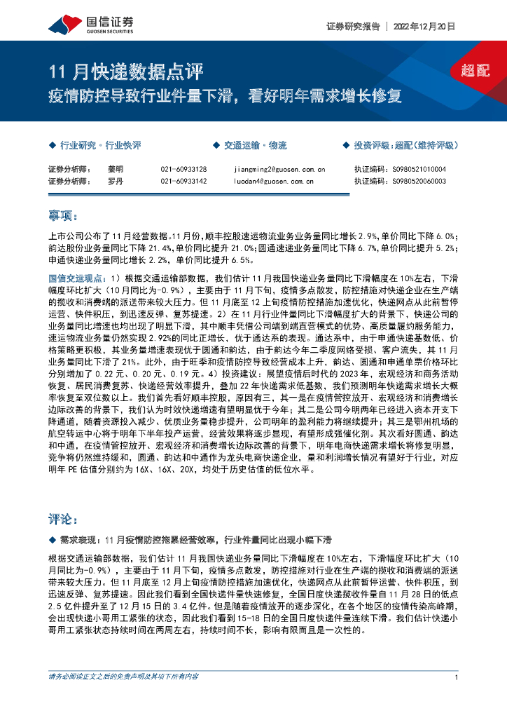 国信证券:11月快递数据点评:疫情防控导致行业件量下滑,看好明年需求增长修复.pdf