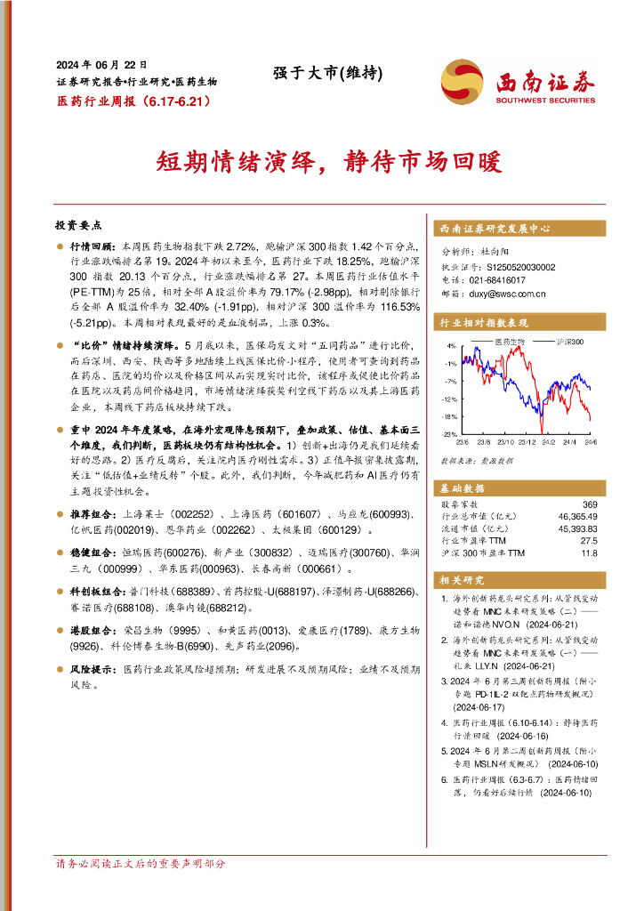 西南证券:医药行业周报:短期情绪演绎,静待市场回暖.pdf