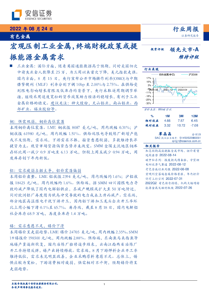 安信证券:有色金属行业周报:宏观压制工业金属,终端财税政策或提振能源金属需求.pdf