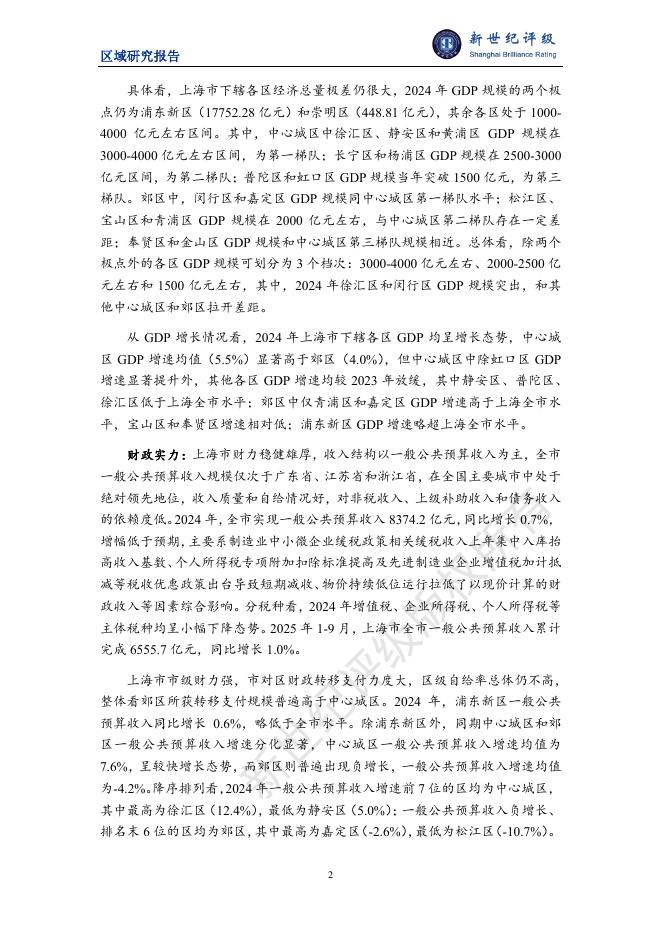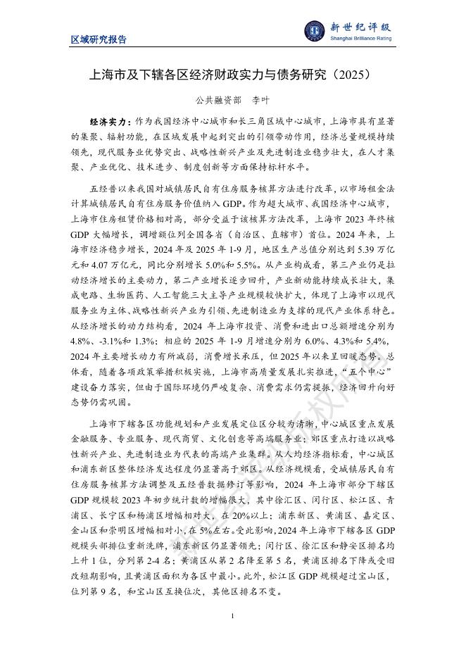新世纪评级:上海市及下辖各区经济财政实力与债务研究(2025).pdf