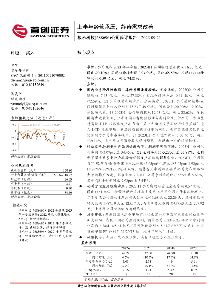 首创证券:极米科技(688696)-公司简评报告:国内业务阶段性承压,海外市场持续增长.pdf