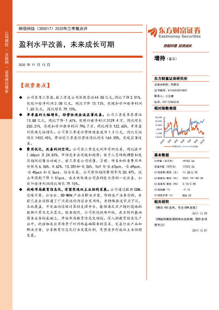 东方财富证券:网宿科技(300017)-2020年三季报点评:盈利水平改善,未来成长可期.pdf