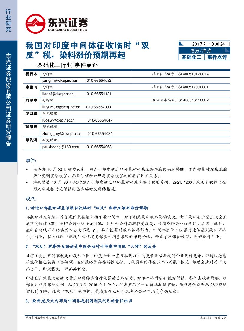 东兴证券:基础化工行业事件点评:我国对印度中间体征收临时“双反”税,染料涨价预期再起.pdf