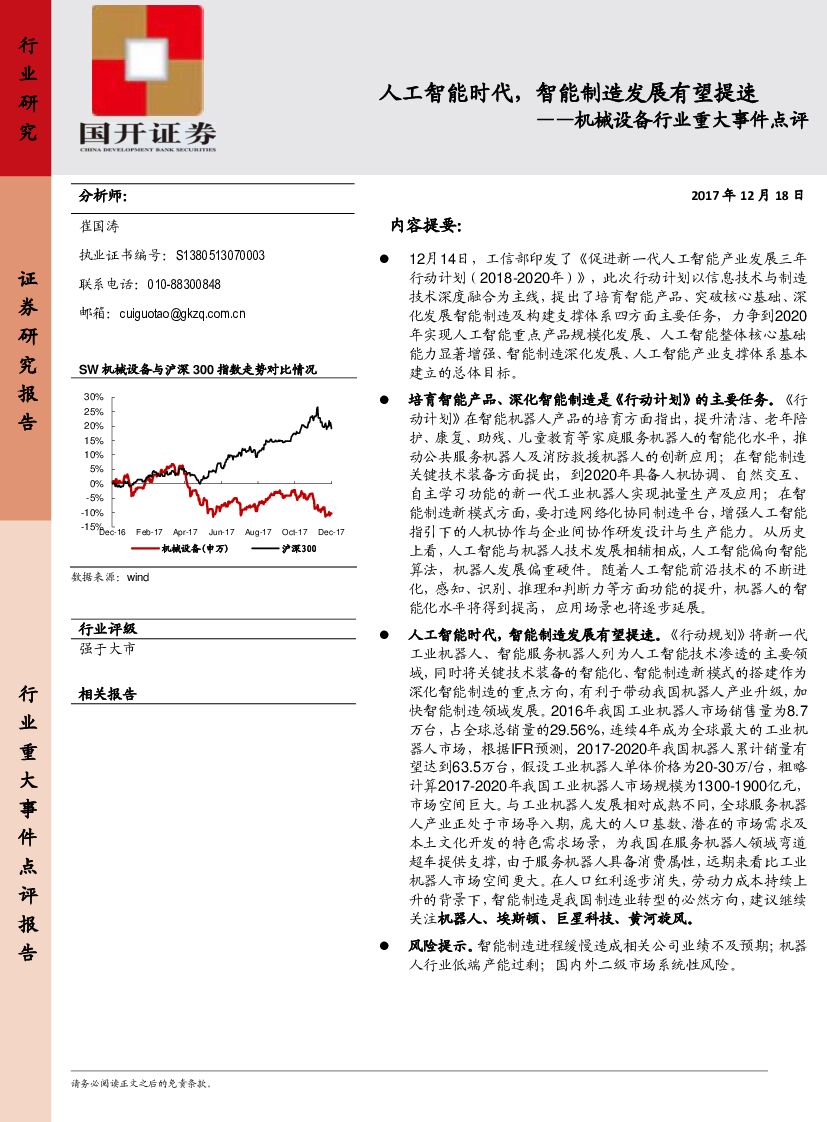 国开证券:机械设备行业重大事件点评:人工智能时代,智能制造发展有望提速.pdf