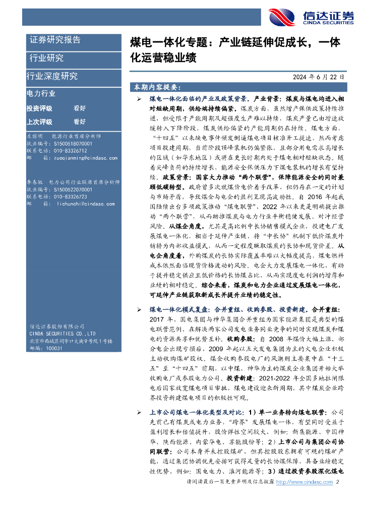 信达证券:电力行业2024年中期策略报告:煤电一体化专题:产业链延伸促成长,一体化运营稳业绩.pdf