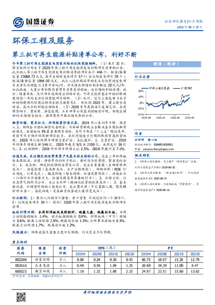 国盛证券:环保工程及服务行业周报:第三批可再生能源补贴清单公布,利好不断.pdf