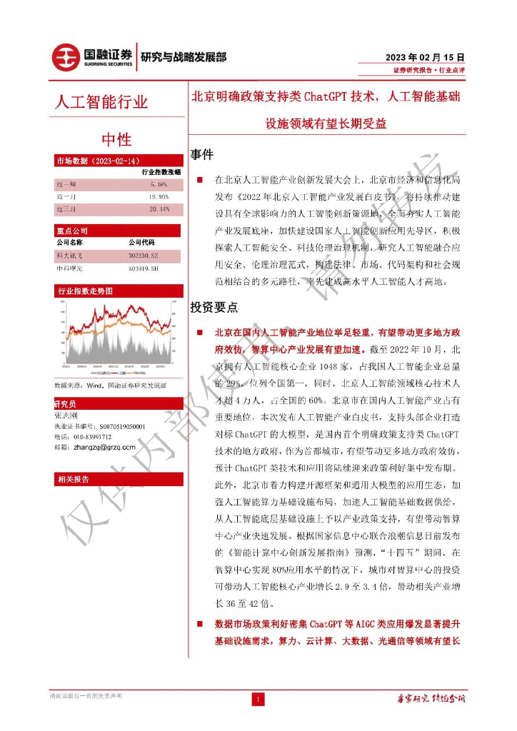国融证券:人工智能:北京明确政策支持类ChatGPT技术,人工智能基础设施领域有望长期受益.pdf