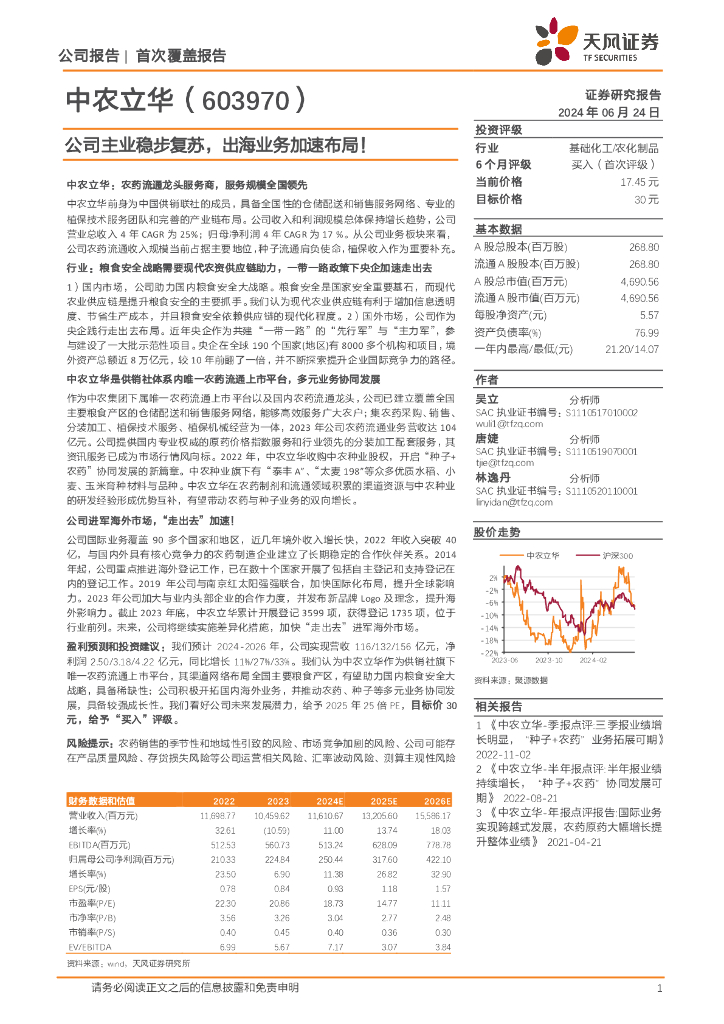 天风证券:中农立华(603970)-公司主业稳步复苏,出海业务加速布局!.pdf