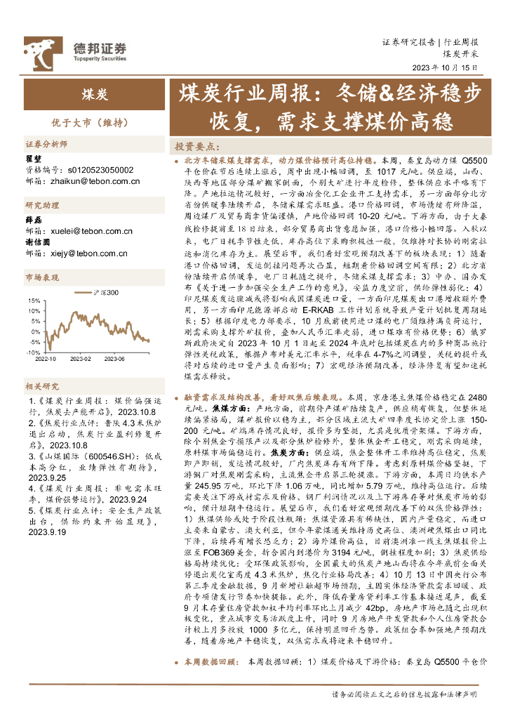 德邦证券:煤炭行业周报:冬储&经济稳步恢复,需求支撑煤价高稳.pdf