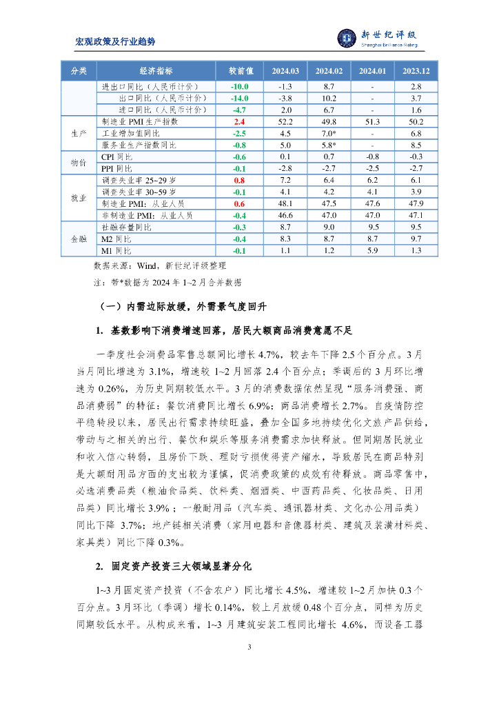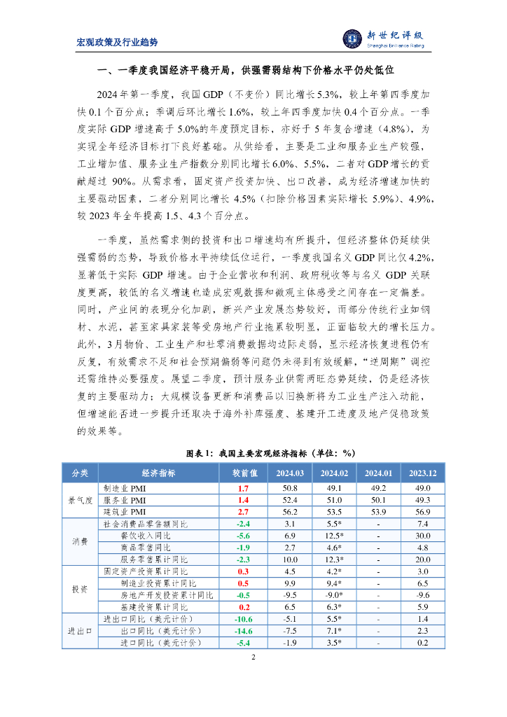 新世纪评级:经济平稳开局 地产链仍较弱——2024年3月宏观和行业运行简析.pdf