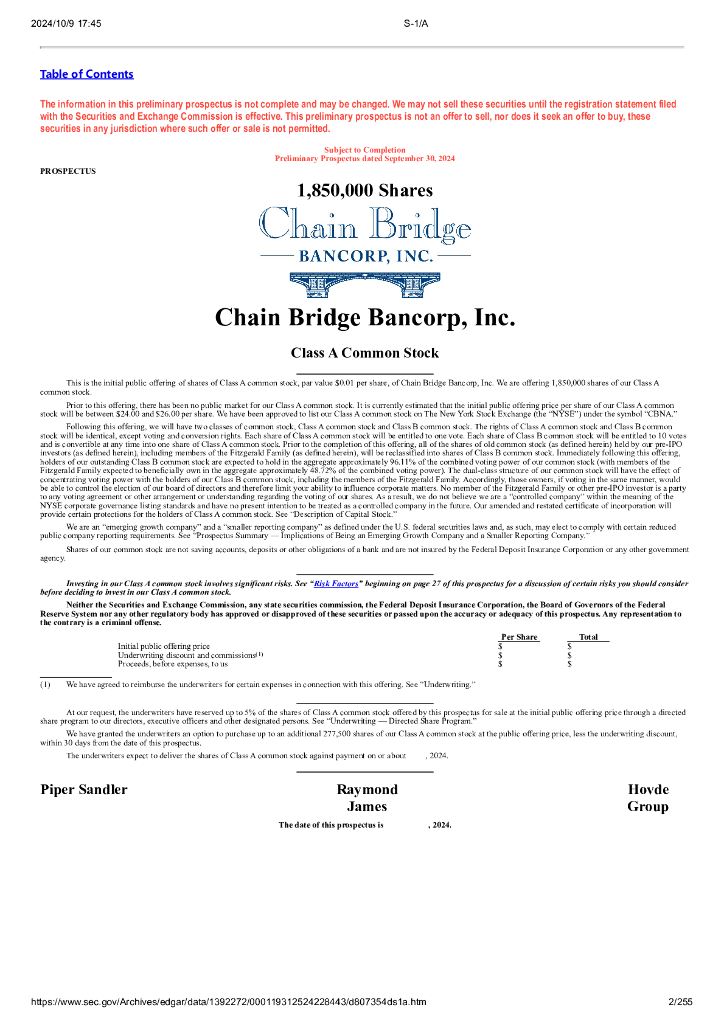 Chain Bridge Bancorp, Inc.美股纳斯达克IPO上市招股说明书.pdf