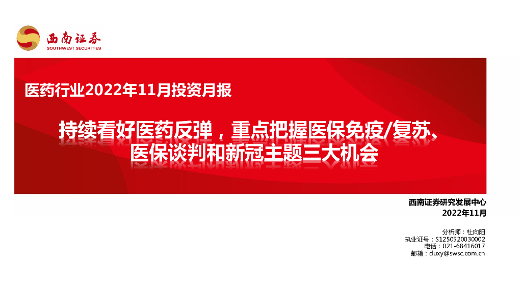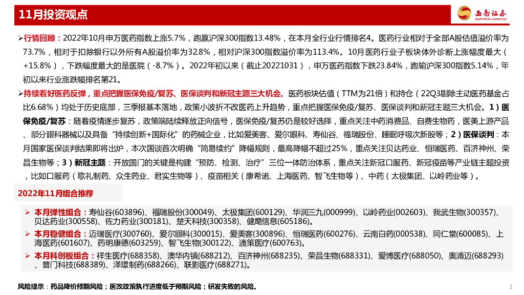 西南证券:医药行业2022年11月投资月报:持续看好医药反弹,重点把握医保免疫/复苏、医保谈判和新冠主题三大机会.pdf