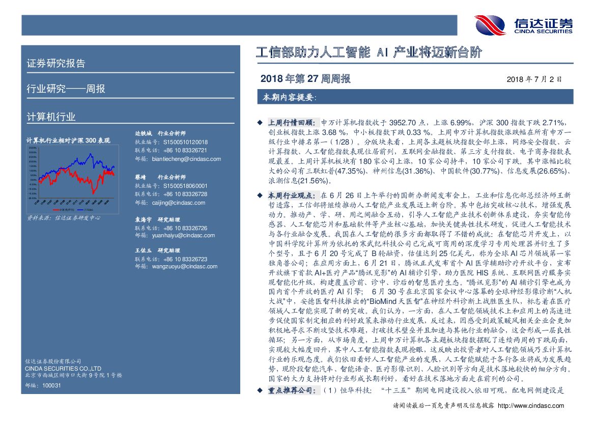 信达证券:计算机行业:工信部助力人工智能 AI产业将迈新台阶.pdf