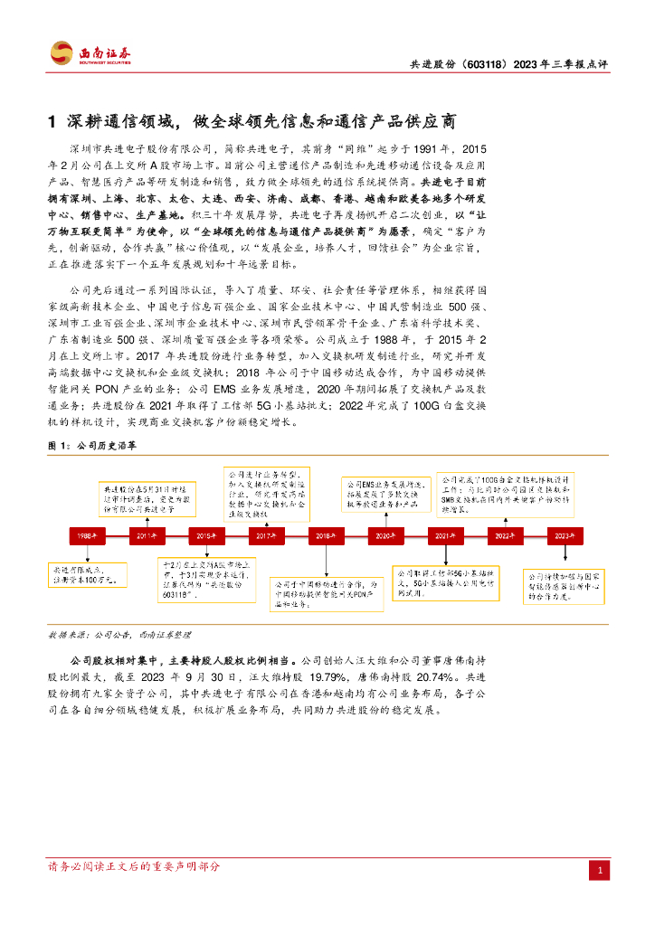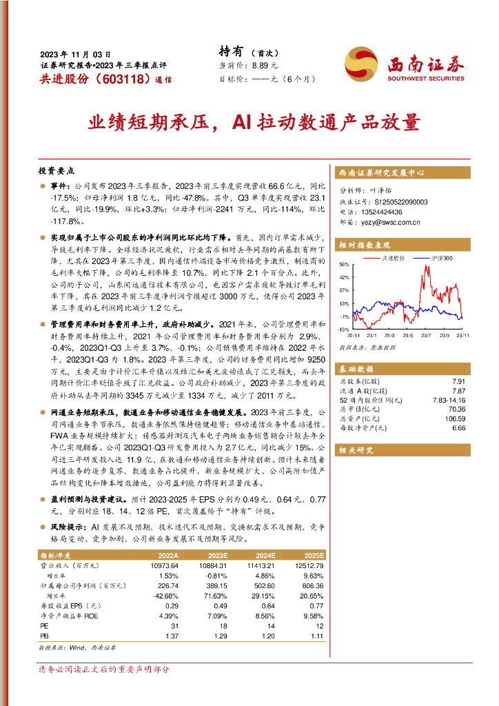 西南证券:共进股份(603118)-2023年三季报点评:业绩短期承压,AI拉动数通产品放量.pdf