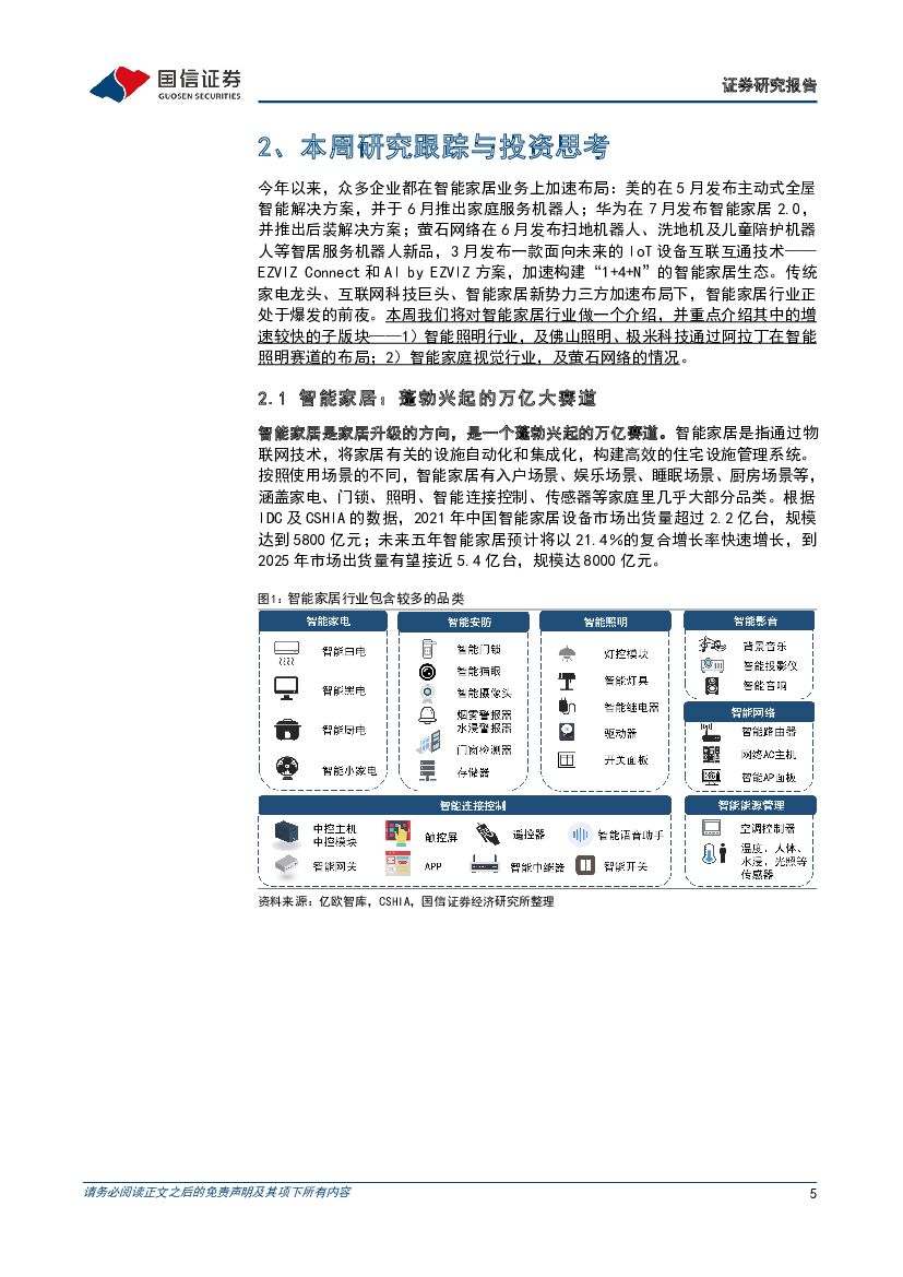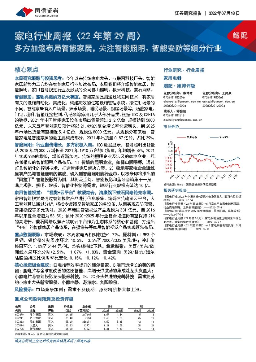 国信证券:家电行业周报(22年第29周):多方加速布局智能家居,关注智能照明、智能安防等细分行业.pdf