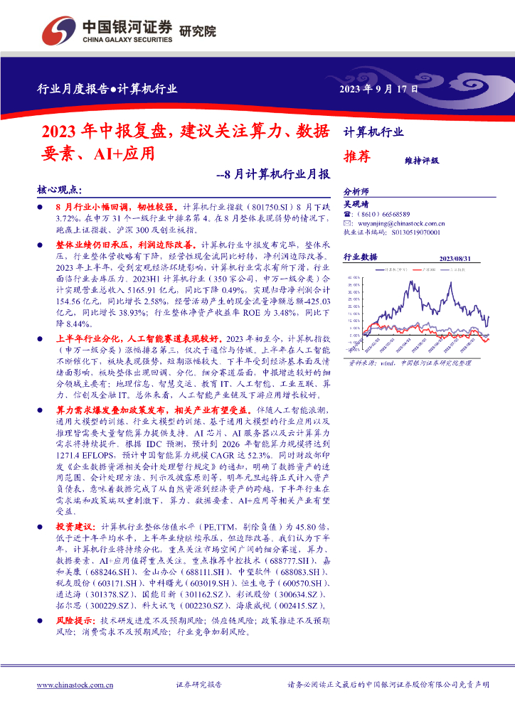中国银河:8月计算机行业月报:2023年中报复盘,建议关注算力、数据要素、AI+应用.pdf