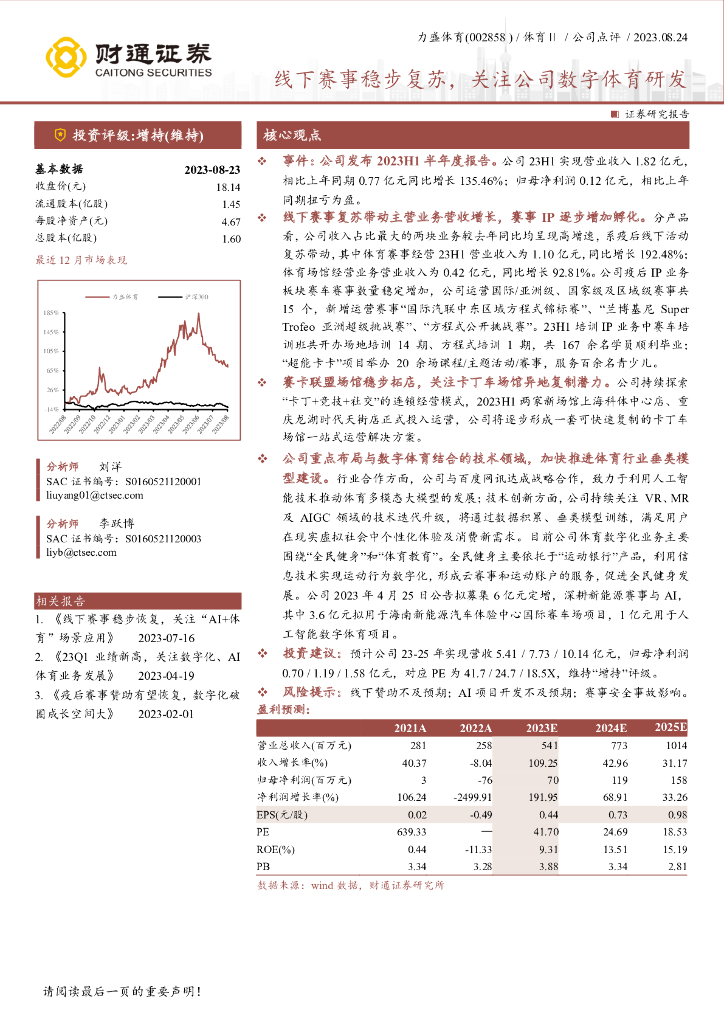 财通证券:力盛体育(002858)-线下赛事稳步复苏,关注公司数字体育研发.pdf