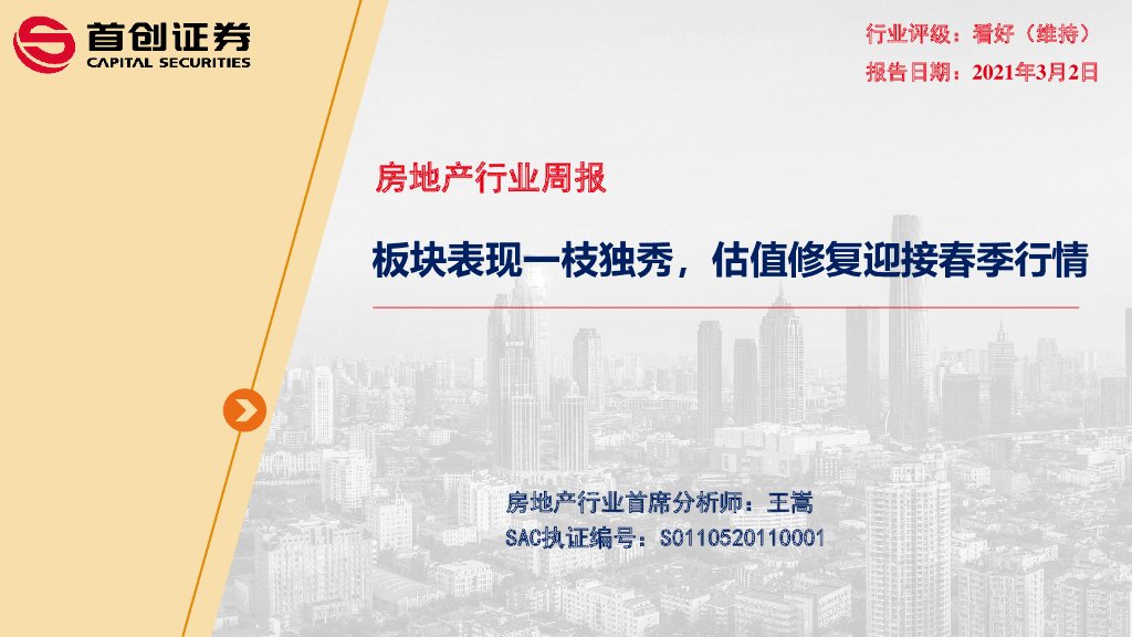首创证券:房地产行业周报:板块表现一枝独秀,估值修复迎接春季行情.pdf