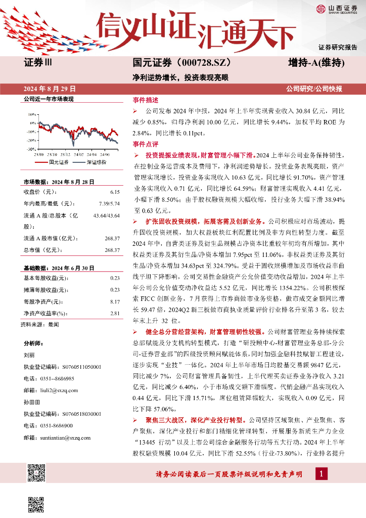 山西证券:国元证券(000728)-净利逆势增长,投资表现亮眼.pdf