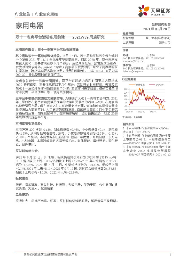 天风证券:家用电器2021W39周度研究:双十一电商平台活动布局前瞻.pdf