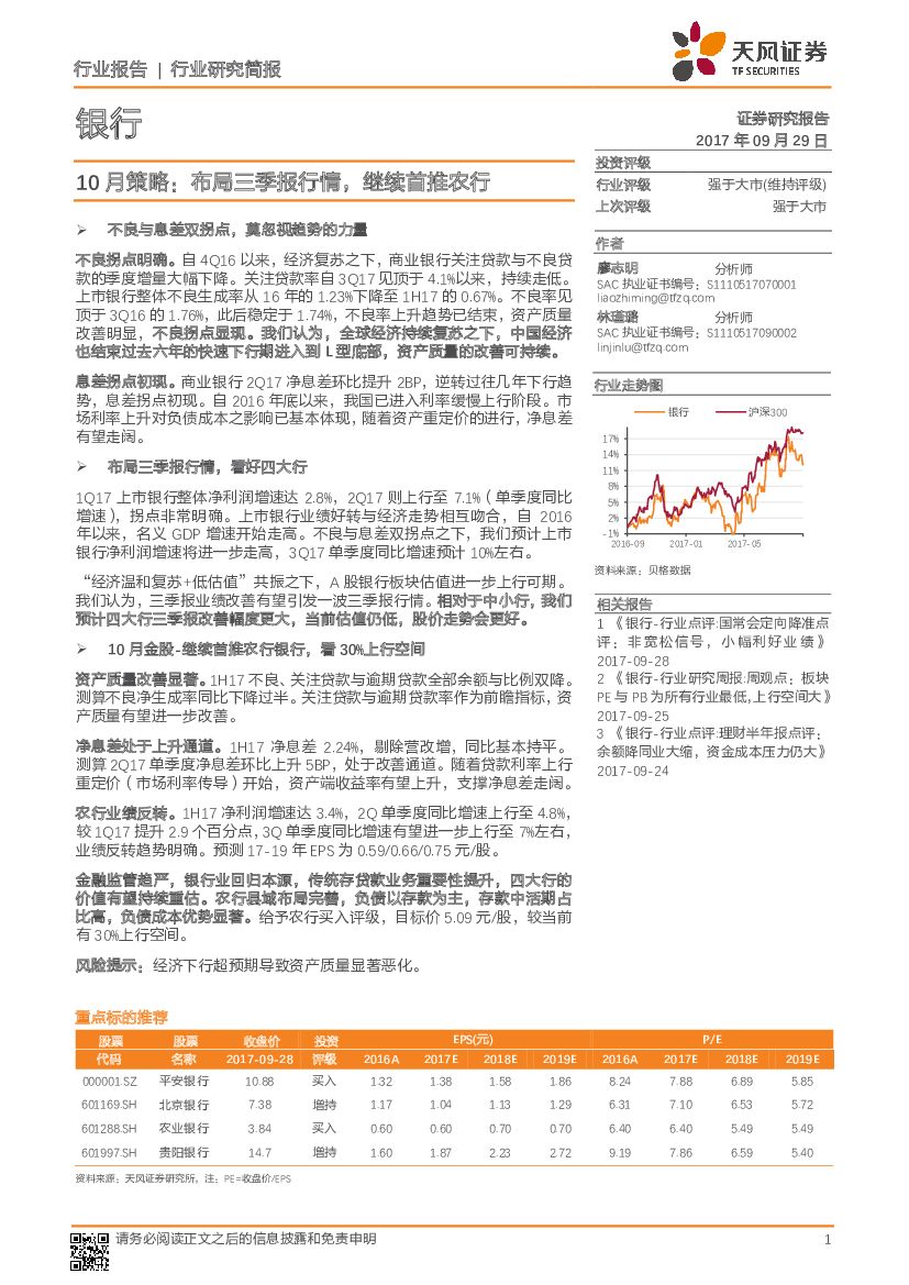 天风证券:银行行业10月策略:布局三季报行情,继续首推农行.pdf