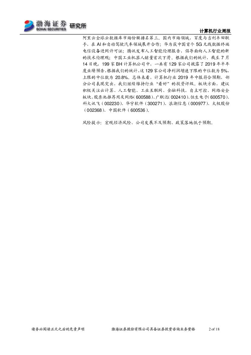 渤海证券:计算机行业周报:计算机行业2019年中报总体符合预期,部分公司表现突出.pdf