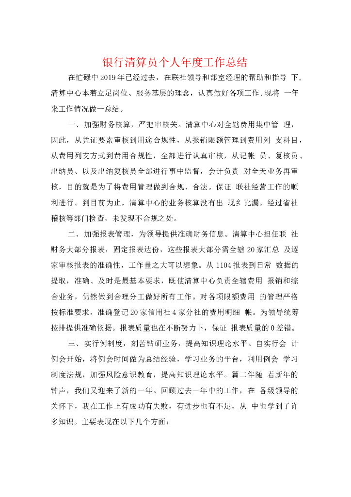银行清算员个人年度工作总结.doc