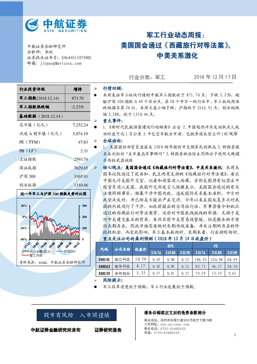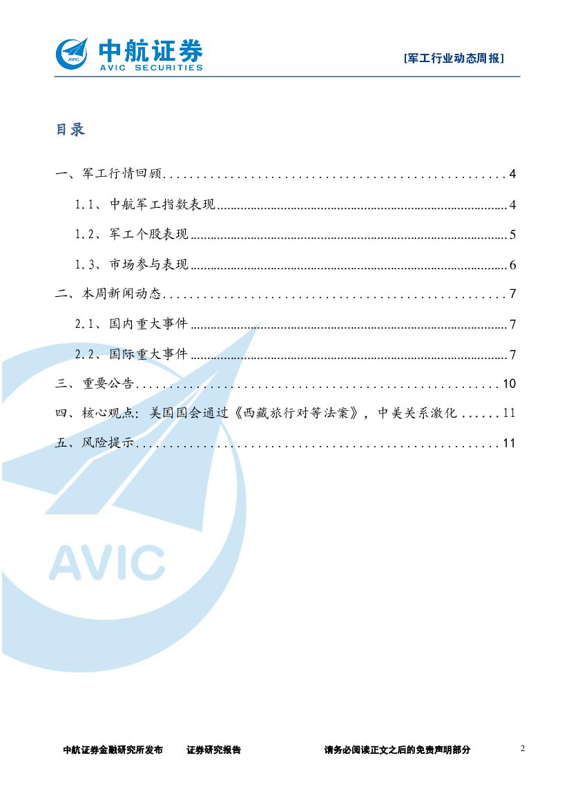 中航证券:军工行业动态周报:美国国会通过《西藏旅行对等法案》,中美关系激化.pdf