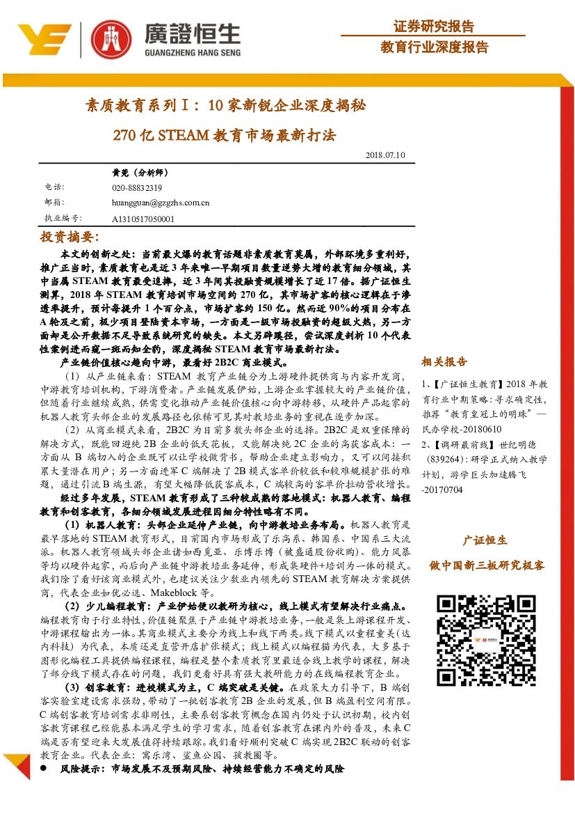 广证恒生证券研究所:素质教育系列Ⅰ:10家新锐企业深度揭秘270亿STEAM教育市场最新打法.pdf