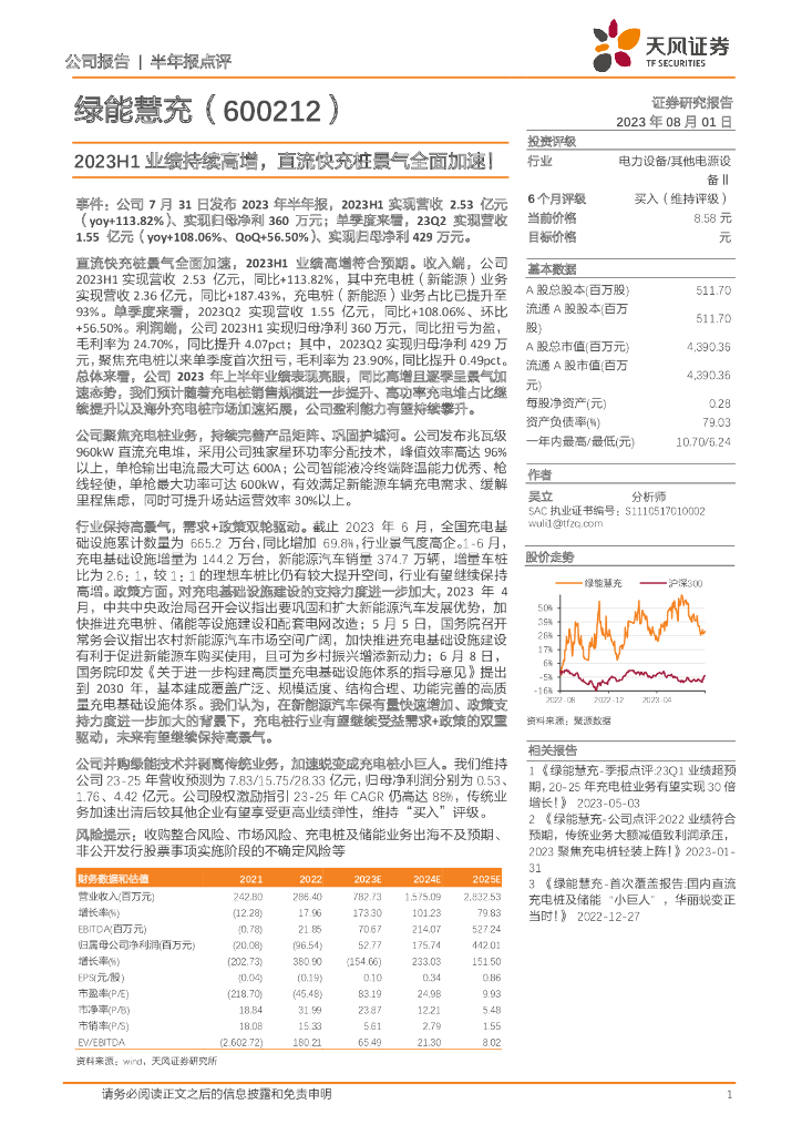 天风证券:绿能慧充(600212)-2023H1业绩持续高增,直流快充桩景气全面加速!.pdf