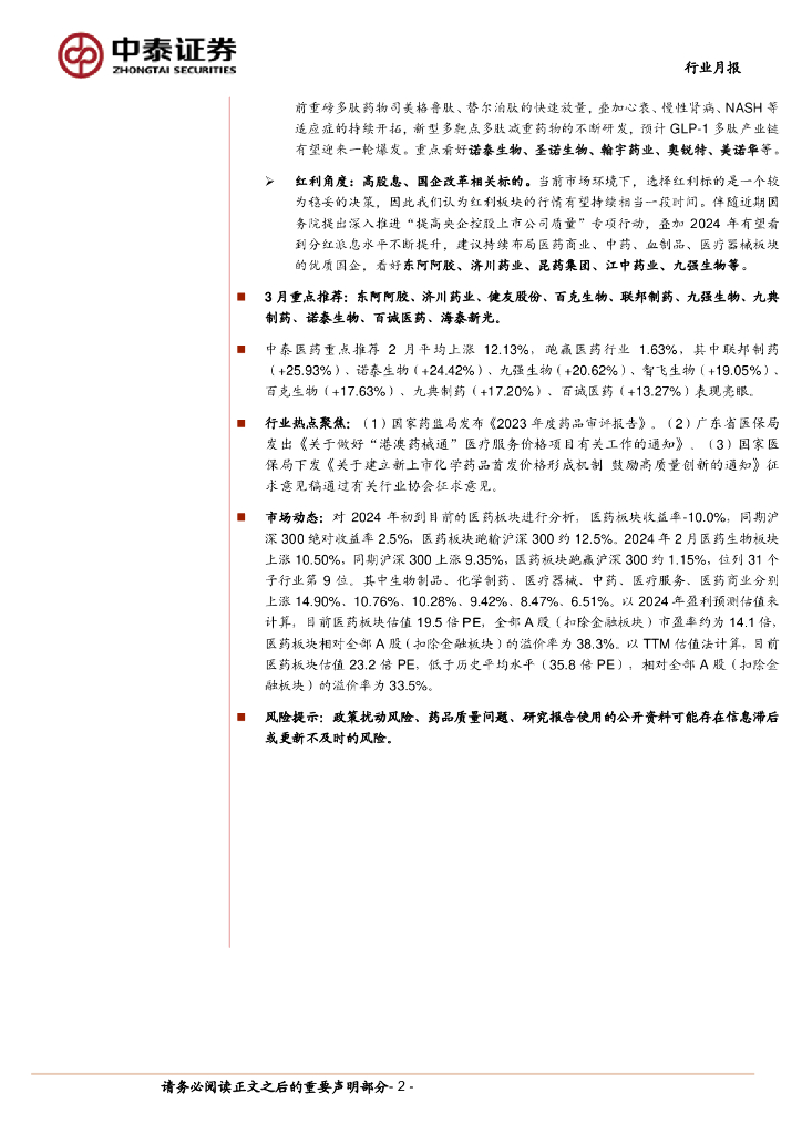 中泰证券:医药生物3月月报:把握弹性、兼顾红利;重点布局Q1业绩.pdf