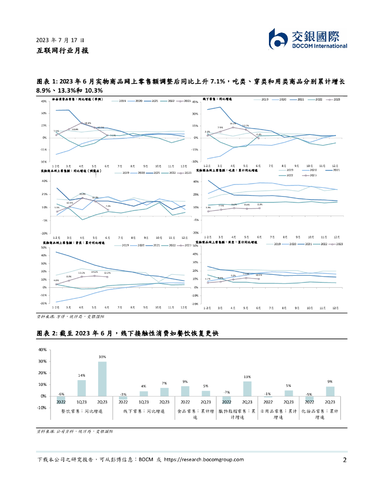 交银国际证券:互联网行业月报:2季度电商大盘增14%,略高于预期,3季度增速或有所回落.pdf