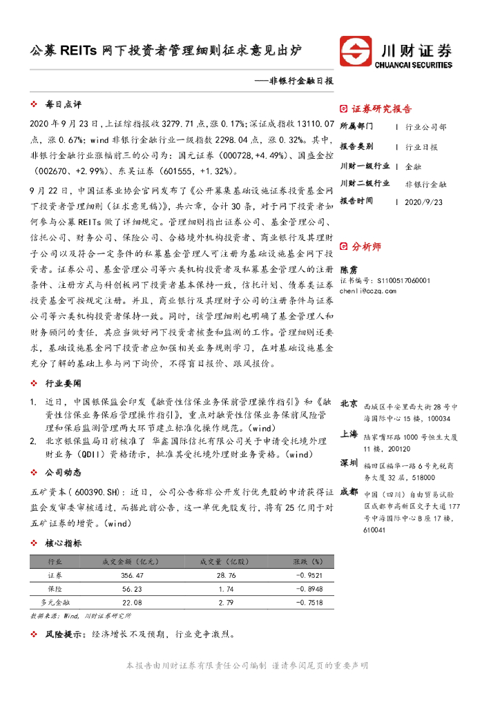 川财证券:非银行金融日报:公募REITs网下投资者管理细则征求意见出炉.pdf